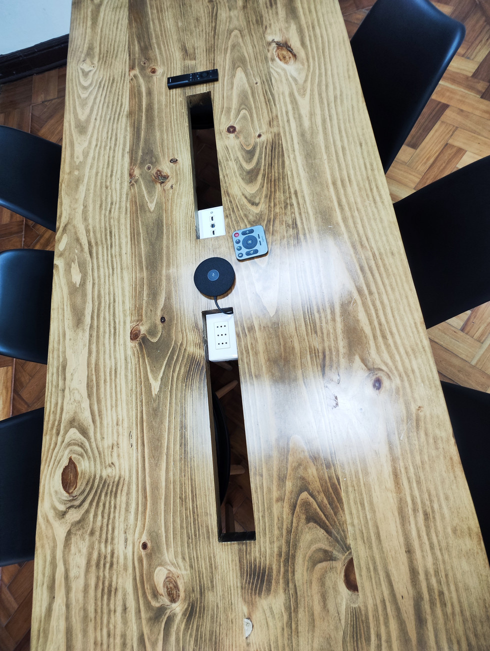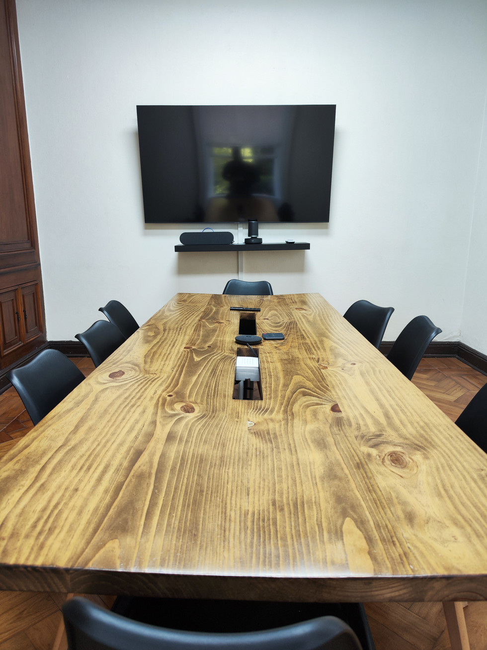 El proyecto conta de tres salas de reuniones, en donde se implementa en dos salas equipamiento de videoconferencia Logitech Rally kit y Logitech Meetup respectivamente con patch de conexiones AV (HDMI y USB) y enchufes de carga desde la mesa. En la otra sala, se implementa un kit mucho más flexible y de libre uso al ser inalámbrico, el que permite no contar con puntos cableados HDMI y USB en mesa, permitiendo presentar contenido inalámbricamente al TV y sin necesidad de cablear entre mesa y muro.